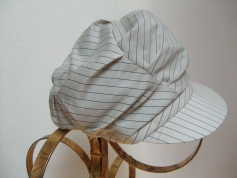 お店のカラーのモノトーンをベースにしたかっこいい帽子が出来上がりました。